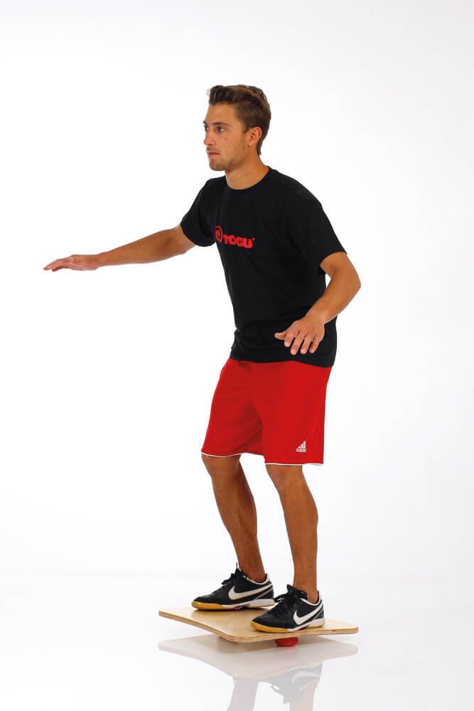 Mit zwei robusten Bällen unter der Holzplatte gibt er die Möglichkeit, ohne Risiko in das sensomotorische Training einzusteigen und dann zu steigern. Das Training geht intensiver in die Tiefe, Wahrnehmung, Reizverarbeitung und Stabilität werden geschult und verbessert. Im Unterschied zu herkömmlichen Balance Boards oder Therapiekreiseln ist die Standfläche durch diese spezielle Konstruktion schwimmend instabil gelagert.