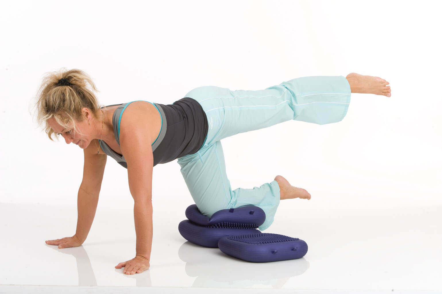 The Dynair-A - made in Germany - is an inflated threefold pillow. It was developed together with Karin Albrecht especially for the Antara® training concept. The achievable body position, possible application as well as training effects are very unique. The way the Dynair-A is constructed, in particular the air filling, cause the sensorimotoric stimuli to work into depth so that the local muscles can actually react.