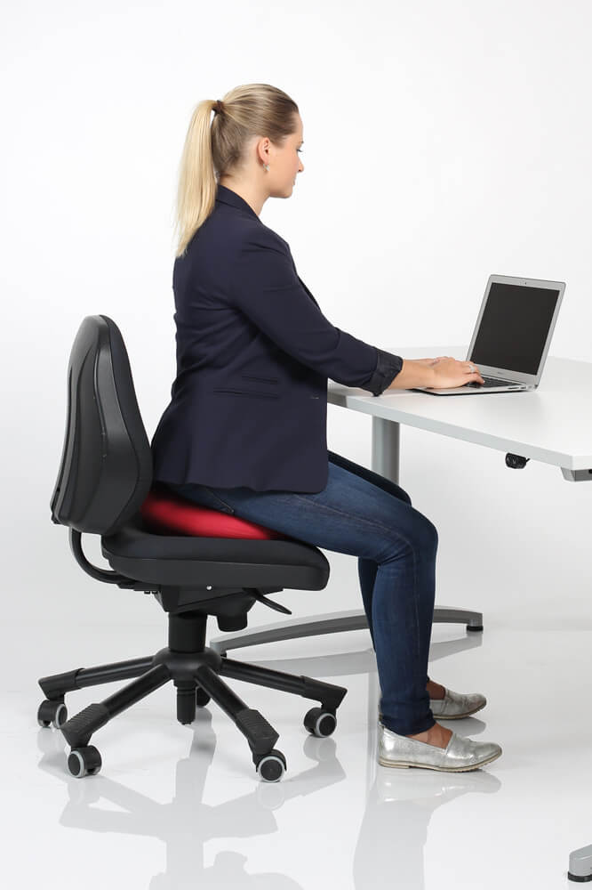 The Dynair® Ballkissen® is prefect because it is saving a lot of space compared to a ball. At first you feel this wobbly cushion underneath you. You get used to it quickly and just after a short while you realize: There is something happening with my body! I sit more upright, I compensate permanently in order to keep balance and I feel my back muscles working. As my back pain gradually disappears, my impression of doing something good for my health is reaffirmed.