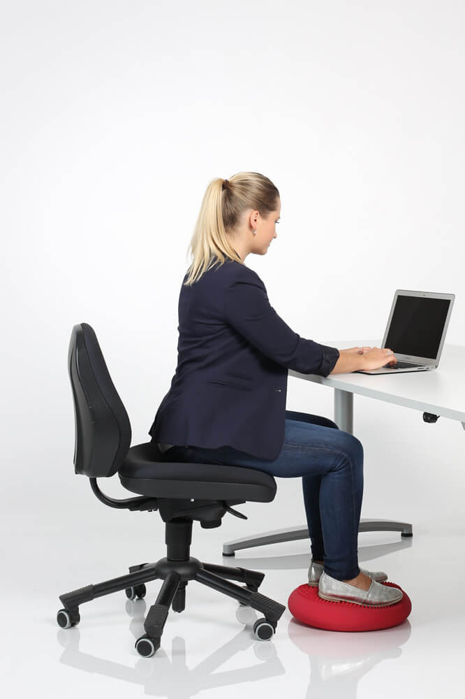 Dynamic sitting and training is made possible by the air filling, the shape and the special high-quality material: minimal movements are constantly and immediately transferred to the body. This involuntarily trains the deeper lying back muscles and the sensorimotor system. In contrast to sitting on rigid surfaces, these deeper lying muscles, which are so important for the stability of the body, are also trained. Besides, it can be used everywhere - at home, in the office or while travelling - and it allows training without any additional time expenditure.