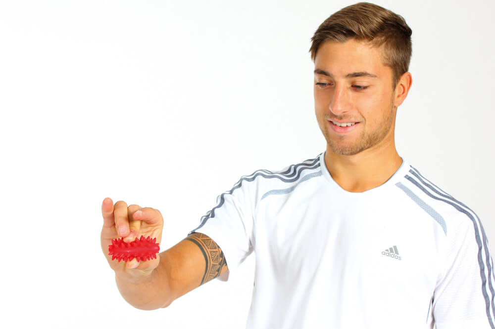 The air-filled knobbed ball - made in Germany - in the elongated ergonomic form as an ideal handy device for mobilisation exercises, circulation stimulation, reflexology and relaxation.
