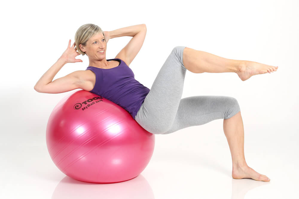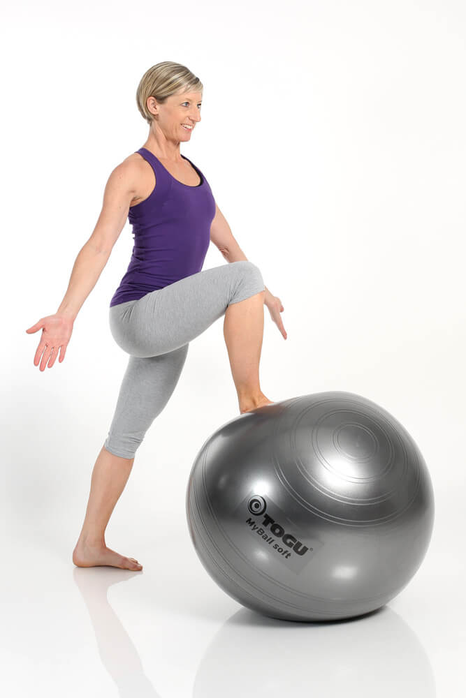 "I sit down on the MyBall Soft and immediately notice the mobility of the ball. In order not to fall off the ball, an upright posture is automatically adopted. By moving with my buttocks in different directions I constantly keep my balance and thus improve my balance. In supine position I roll my back vertebra by vertebra and thus strengthen my back muscles. If I want to relax, I just lie on my back, the ball is under my lower legs. Then I roll the ball to the left and right. The specially foamed surface also allows a pleasant training for various exercises in prone position".