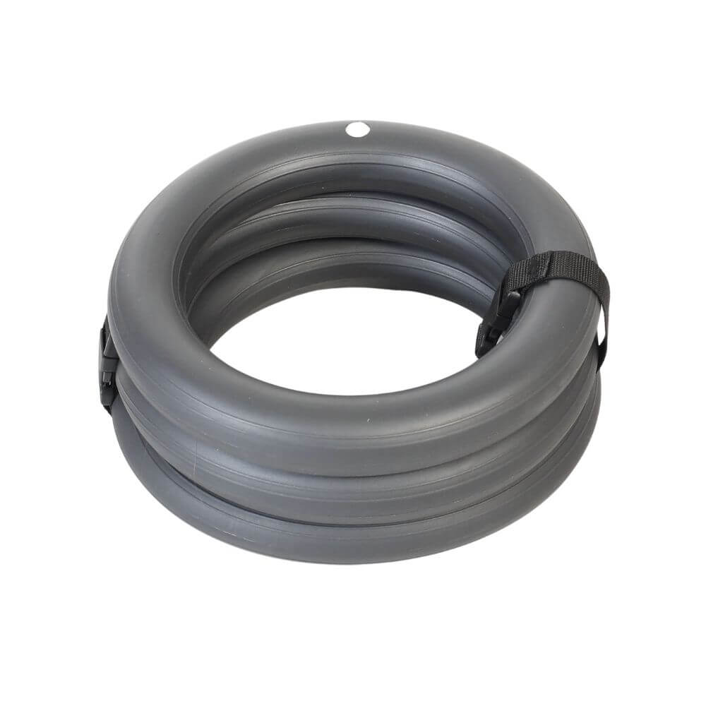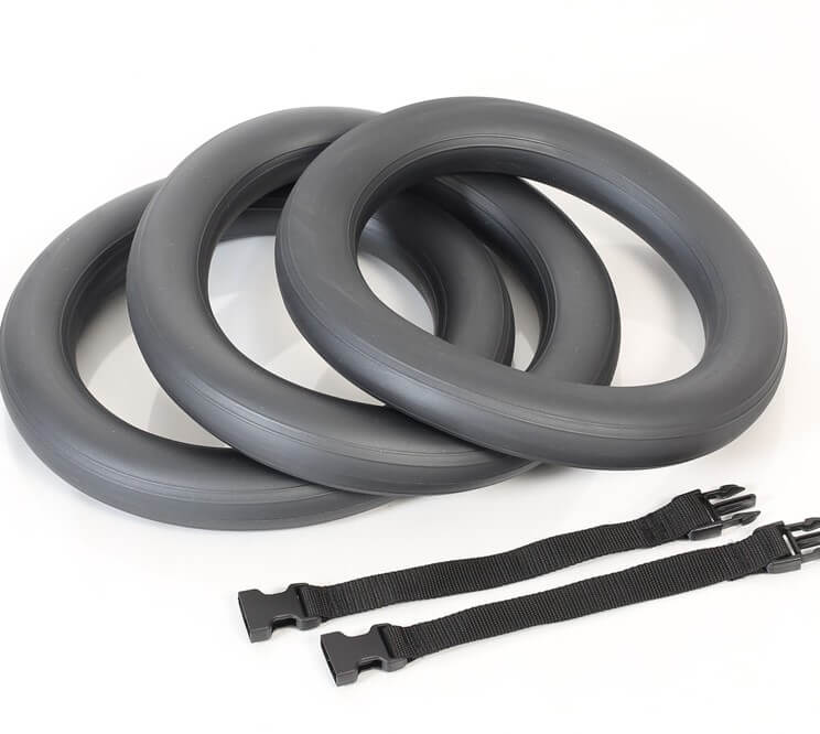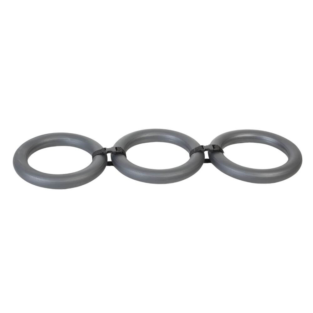 The "Trainchain" is a most versatile training device. It is a clever "all-in-one" tool due to the ingenious combination of three specially shaped weight rings. The texture of the rings makes them comfortable to hold and carry. The Trainchain is designed for indoor and outdoor use and can be used as a triple or double chain or as a single ring. The connecting straps allow a quick and uncomplicated change of the different combinations.
