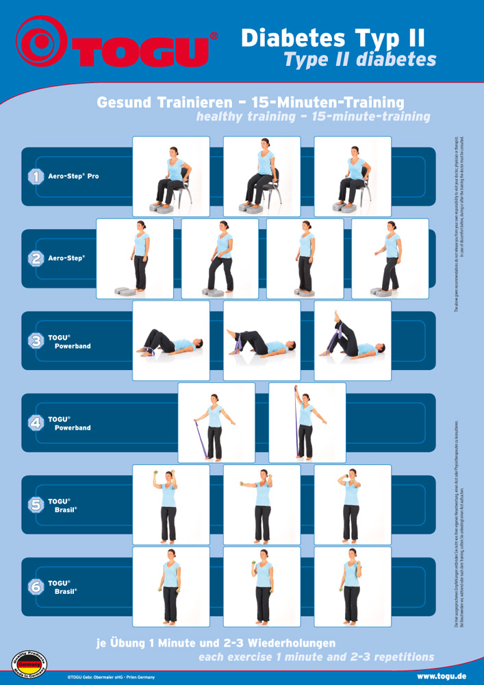 The 15-minute exercise programme for this indication includes suitable exercises which can be carried out in consultation with your doctor. It can be accessed online here free of charge and is easy to integrate into your everyday life. The program is also suitable for untrained persons. The special Diabetes Type II set provides additional motivation for training and exercise. The air-filled training devices are also ideal for use in a group.