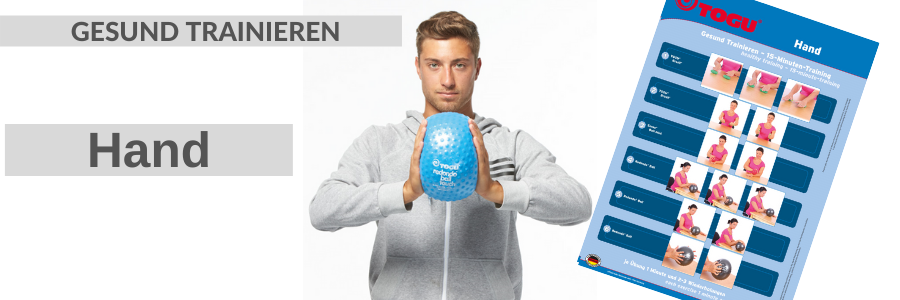 Inhalt: - Brasil 2er-Set - Redondo Ball (18 cm) anthrazit - Senso Ball mini, 11 cm rot- Trainingschart Hand Empfohlene Bewegungsprogramme und Trainingsgeräte für die Hand Die Hand als „Greiforgan“ stellt ein wichtiges Körperteil mit einer Vielzahl an praktischen Funktionen dar. Sie besteht aus vielen einzelnen Knochen und Gelenken, z.B. wird alleine die Handwurzel (jeder der täglich im Büro eine Maus bedient kennt sie) aus acht verschiedenen Knochen gebildet. Ein Großteil der Muskeln für Handbewegungen befindet sich am Unterarm. Außerdem sind besonders die Finger mit vielen Rezeptoren besetzt, die für den Tastsinn zuständig sind. Demzufolge gibt es eine große Zahl an möglichen Problemen, die an der Hand durch Verletzung oder dauerhafte Überbelastung entstehen können Durch einfache Greif- und Halteübungen kann die Beweglichkeit der Hand gefördert werden. Die TOGU Geräte setzen hier zusätzlich Reize und trainieren die Sensomotorik, die vereinfacht gesagt das Zusammenspiel zwischen sensorischen (z.B. Nervenbahnen) und motorischen (z.B. Muskulatur, Sehnen, Bänder) Leistungen des Körpers darstellt. Das vom Teamarzt der deutschen Snowboard-Nationalmannschaft Dr. Sommer entwickelte 15-minütige Programm, das Sie hier kostenlos online abrufen und einfach in Ihren Alltag einbauen können, beinhaltet solche Übungen. Es ist auch für Untrainierte durchführbar. Durch den Einsatz des darauf abgestimmten TOGU Hand Geräte-Sets werden die Trainingsreize noch intensiviert. Weitere Artikel, die Sie in dieser Kategorie finden, sind ebenso geeignet für die Anwendung in diesem Bereich. Dr. med. Gerrit Sommer: „Das Geniale am Gesund Trainieren-Konzept ist die optimale Kombination aus perfekten Trainingsgeräten und einfacher Umsetzbarkeit für den Patienten. Dies wird ergänzt durch eine einzigartige Übungskombination, die auf die spezifische Krankheit, Verletzung oder den Wunsch der Gewichtsreduktion zugeschnitten ist. So ist ein Training für Jung bis Alt möglich.“ Egal ob Sie das Programm zur Prävention einsetzen oder erst nach dem Auftreten eines gesundheitlichen Problems aktiv werden: Bei Beschwerden fragen Sie bitte immer Ihren Arzt oder Physiotherapeuten um Rat. Gesund Trainieren bietet Ihnen eine Lösung, die Sie eigenverantwortlich im Alltag als Ergänzung zur therapeutischen Behandlung durchführen können. -made in Germany-