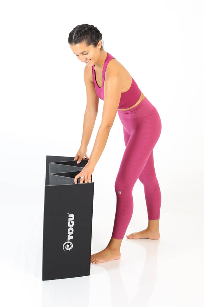 Die Matte, die das Training einfach macht. Einfach zusammenfalten, einfach zu verstauen (ca. 32 x 60 cm), super leicht - einfach zum Mitnehmen. Hergestellt aus hochwertigem PE-Schaum. Oberseite mit für die Haut sehr angenehmen Textilgewebe. Nimmt keine Feuchtigkeit auf.