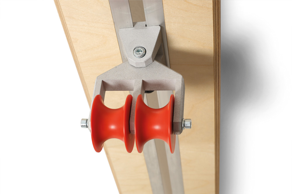 Das System wird mit einem Double Gelenk (zwei Bänder einhängen) verwendet und das Standardbefestigungsmaterial wird mitgeliefert. Die individuellen Anforderungen an die Wandbefestigung sind zu beachten.